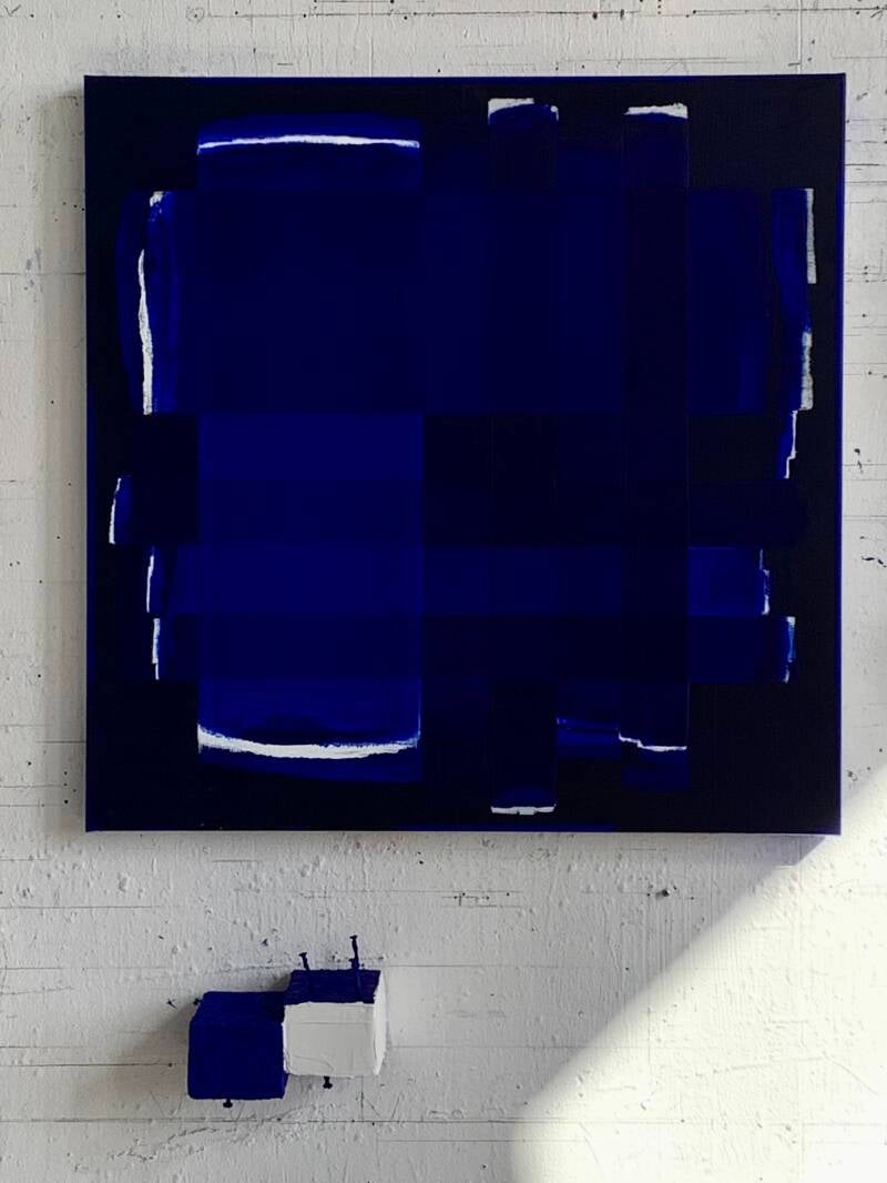 Ik borduur voort op de uitspraak: een schilderij is een plat vlak gevuld met verf. In mijn beeldend werk probeer ik een verbeelding te maken van een oppervlak. Immers een oppervlak is een plat vlak gemarkeerd door lengte maal breedte. Dat wordt meestal uitgedrukt in bijvoorbeeld vierkante meters (m2 ). Voor de m kan je alles invullen. In de bijgevoegde voorbeelden is m= a+ b en m= a+4b. Schilderkunstige vrijheden worden veelvuldig toegepast, zoals de zichtbaarheid van de aanzet en het einde van de kwaststreek aan de randen van het schilderij, het verbeelden van de wiskundige vergelijkingen, het veelvuldig overschilderen van een kleur, zodat een diepe verzadiging van kleur ontstaat.